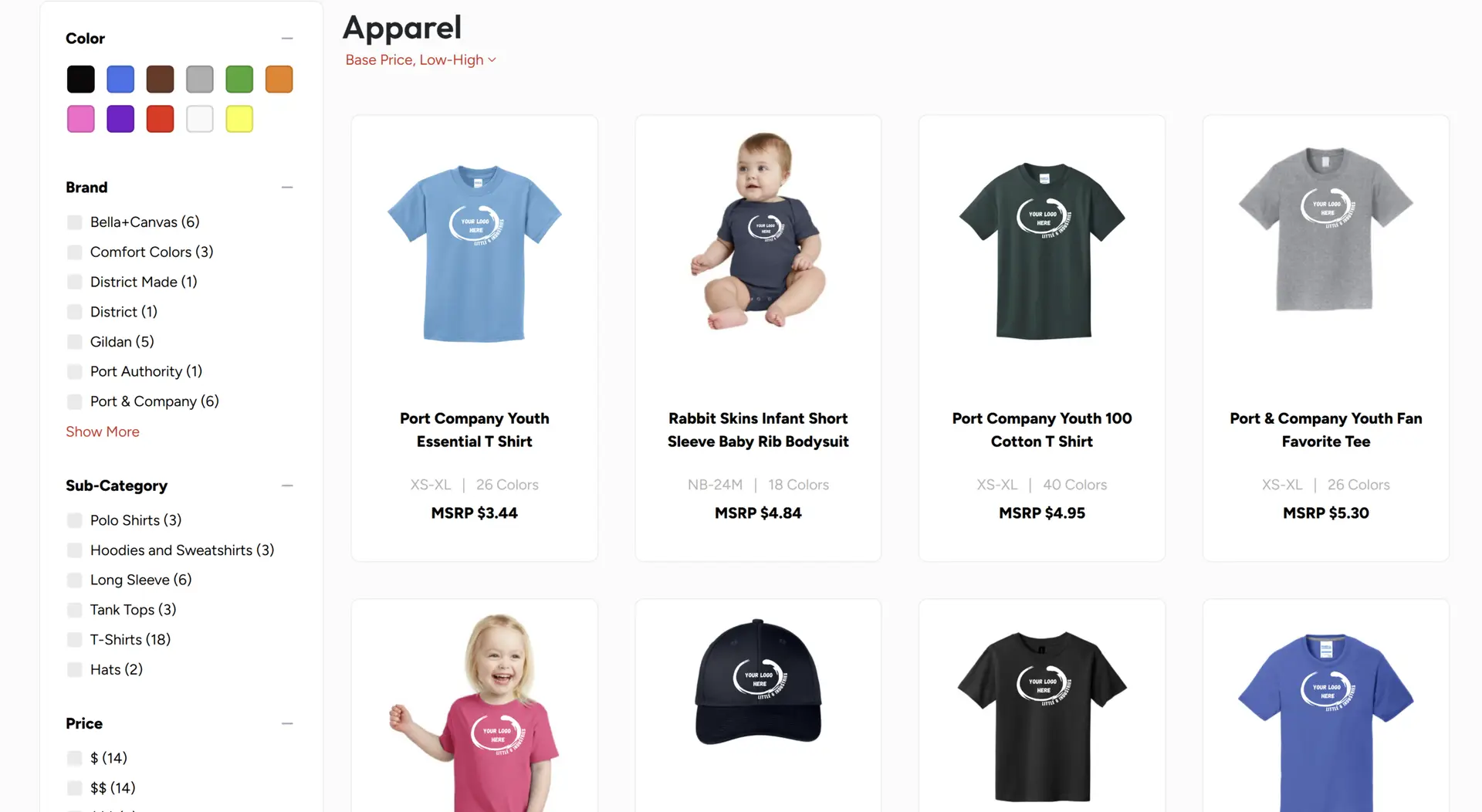 Brand Catalogs: View complete catalogs from Bella Canvas, Gildan, Sport-Tek, and other popular brands